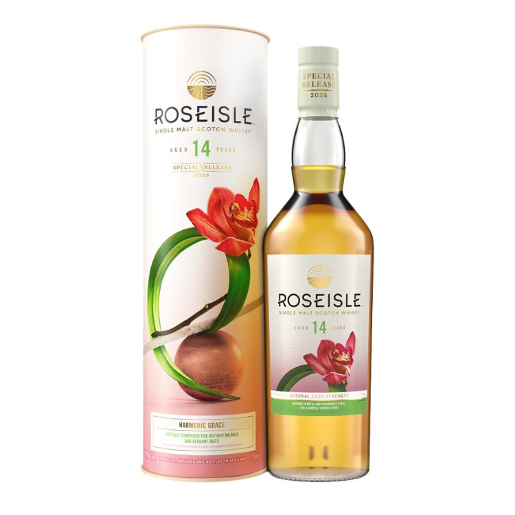 The oldest Roseisle released, this is a beautifully layered and well‑integrated malt with sophistication from Elgin, Speyside. Part of the coveted 2025 Special Releases collection, enjoy this limited edition 111.8 proof Roseisle Harmonic Grace Aged 14 Years Single Malt Scotch Whisky neat or on the rocks. A delicate combination of green, grassy, fruity, and nutty‑style spirits are masterfully blended through meticulous attention to detail for an exquisite taste. Unearth new whisky horizons with this artfully composed, refined single malt with leanings toward the apéritif moment. Includes one limited edition 750 mL bottle of Roseisle Harmonic Grace Aged 14 Years Single Malt Scotch Whisky.