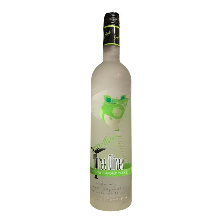 The Green Apple flavor specifically offers a vibrant, fruity taste profile. Three Olives Vodka is known for its versatility and is ideal for sipping chilled, over ice, or mixing into cocktails