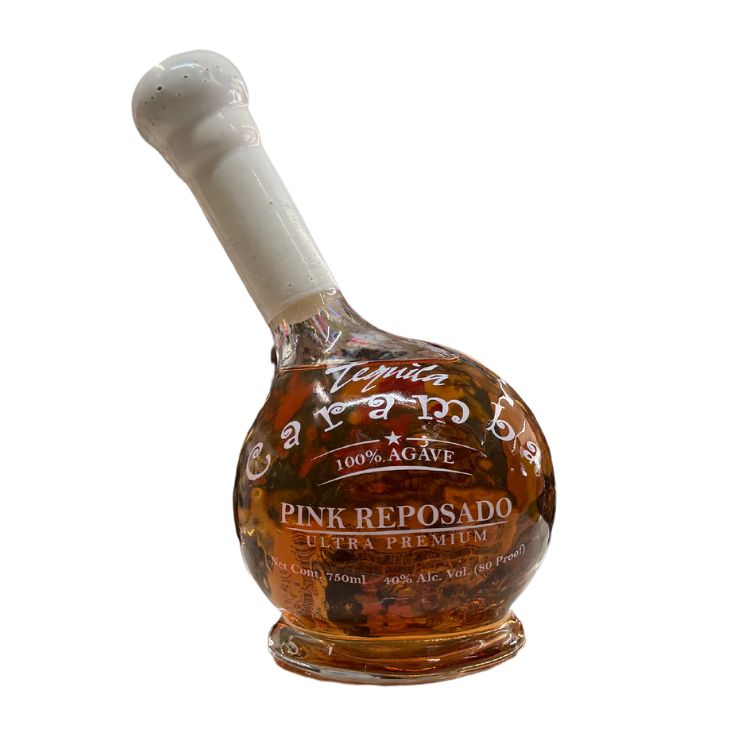 Caramba Pink Reposado Tequila gets its colors from being aged in Bordeaux wine casks for at least six months, With exotic fruit notes, this works just as well on its won as it does with fruit juices and other mixers.