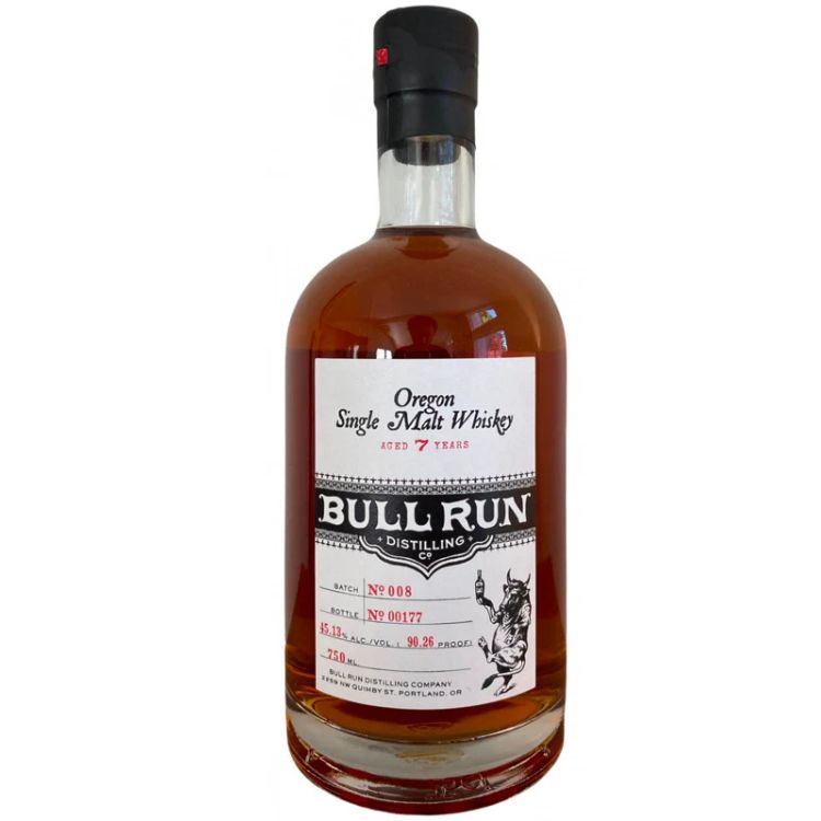 Bull Run Distillery's 7 Year Old Madeira Cask Finish Oregon Single Malt Whiskey is a 100% malted barley whiskey, pot-distilled and aged in Oregon oak, then finished in Madeira casks, offering a unique flavor profile