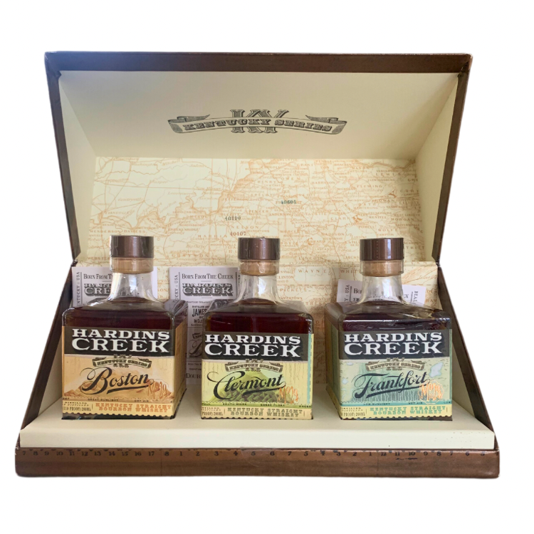 Hardin's Creek Kentucky Series Trio: A Journey Through Bourbon Terroir The Hardin's Creek Kentucky Series Trio is a unique and innovative collection from James B. Beam Distillery, offering a fascinating exploration of bourbon terroir. This special bundle brings together three distinct expressions—Clermont, Frankfort, and Boston—in a three-pack of 200ml bottles, each showcasing the impact of different environments on whiskey.