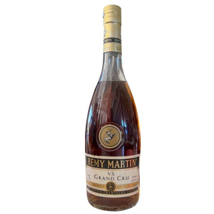 A bottle of Rémy Martin VS Grand Cru, made from grapes grown in the Petite Champagne region of Cognac