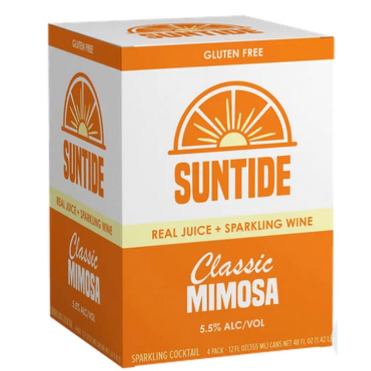 Suntide Classic Mimosa. A classic Mimosa made with real fruit and premium wine in a RTD can. This refreshing beverage is perfect for any day of the week not just "Sunday brunch" - Just chill and enjoy. 4 pk, 12oz - 5.5% abv.