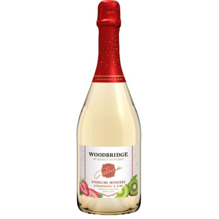 Fresh fruit flavor meets bubbly wine in Woodbridge by Robert Mondavi Sparkling Infusions Strawberry and Kiwi Sparkling Wine. Made with premium brut sparkling wine that is infused with vibrant, natural fruit flavors for a touch of sweetness, this California wine's refreshing strawberry and kiwi flavors strike the perfect balance between light and sweet, making it the ideal bubbles wine for any occasion.