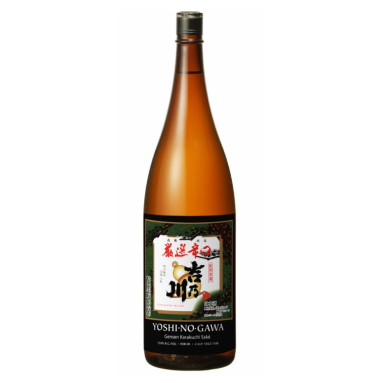 Yoshinogawa Gensen Karakuchi Sake is a versatile, everyday drinking sake that showcases the natural bounty of Niigata's mountain climate. Crafted from Gohyakumangoku rice with a 65% polish, this Futsushu-grade sake features a delightful balance of clean, crisp, and subtly fruity flavors. The term "Gensen" denotes specially selected, while "Karakuchi" means dry, reflecting the sake's extra-dry profile. With an alcohol content of 15.6% and an SMV of +7, it can be enjoyed chilled, at room temperature, or slightly warmed.